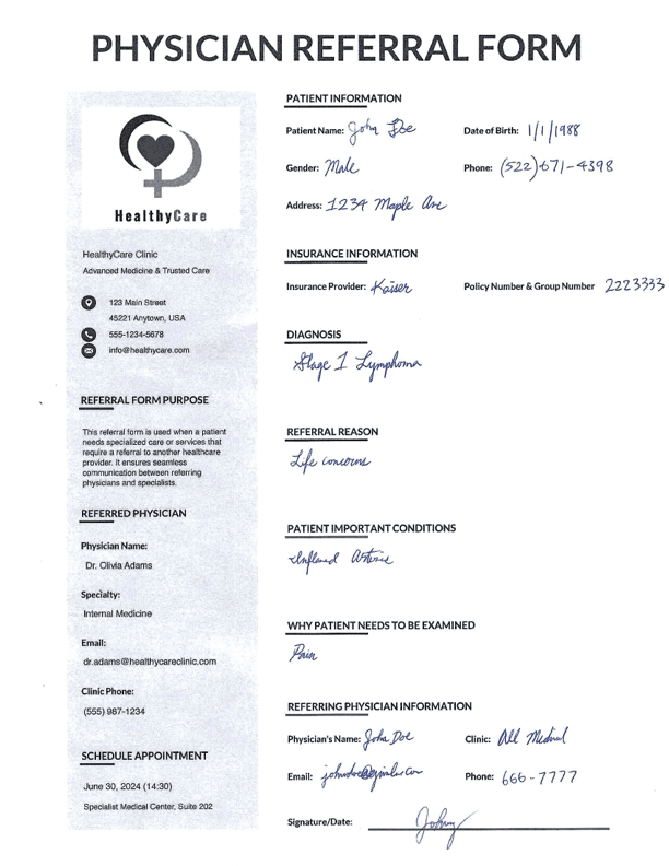 Universal Classification Engine. Recognizes and classifies more than 200 medical document types — from physician notes and intake forms to referral letters, labs, and imaging.