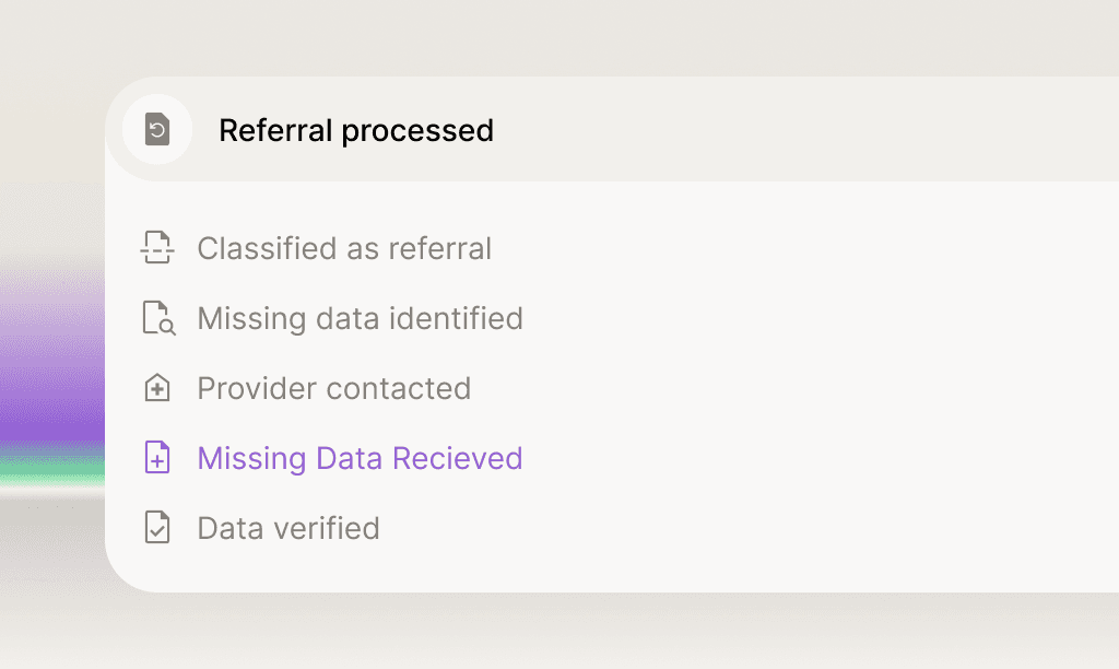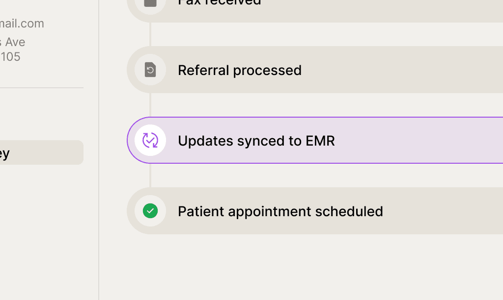 Don’t add another software tool. We integrate seamlessly with your existing workflow, from inbound channels like fax or email to your EMR or practice management system. No new software to learn, no unnecessary disruptions - just better results with the tools you already use.